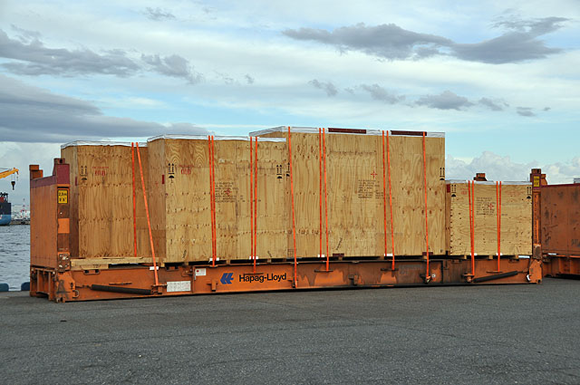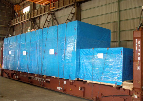 箱體總高度如未超過陸運高度限制,可省去平板車轉運,將櫃體直接拉至廠區內固定。